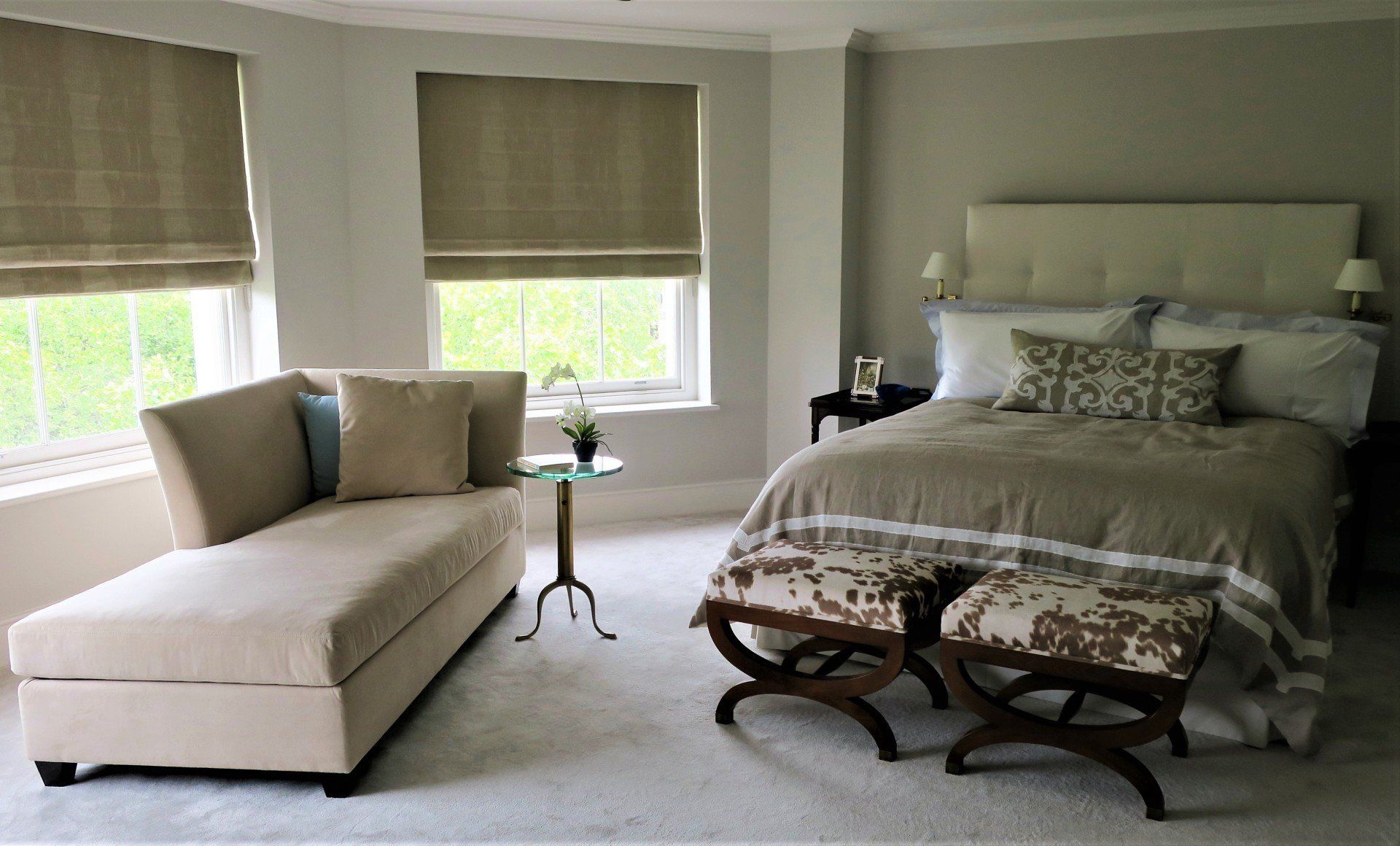 Study - Furnished with Donghia's Club chair, Lelievre fabric for blinds, and a custom desk by Decca London