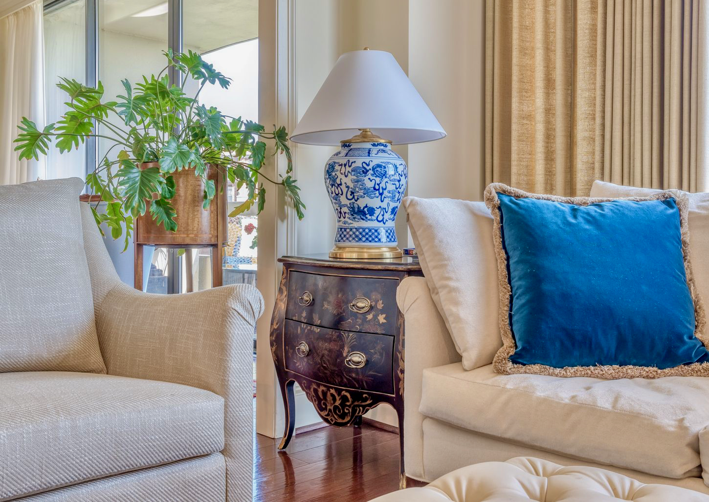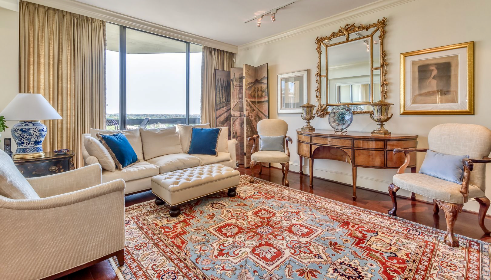 A complete overhaul and the removal of all existing furnishings, the selection of all new window treatments, new electrical reconfigurations for additional lighting, new furnishings, and floor coverings transformed the space.