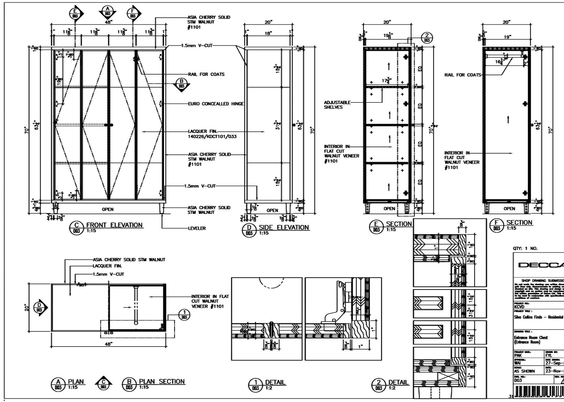 At this stage we will also present a fully itemised breakdown of costs in line with the agreed budget. (Detail drawing of entrance room cabinet shown below)